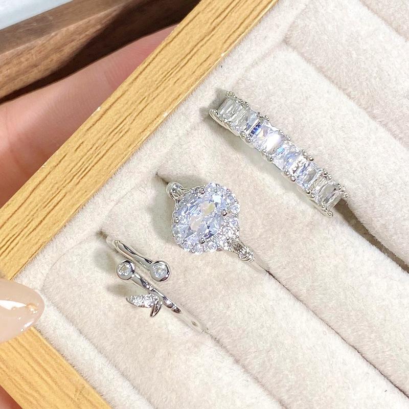 Bouquet Diamond Ring Light Luxury Pigeon Egg Zir*****Pen Ring Femininity Row Diamond Stack Wearing Bamboo High Sense Ring