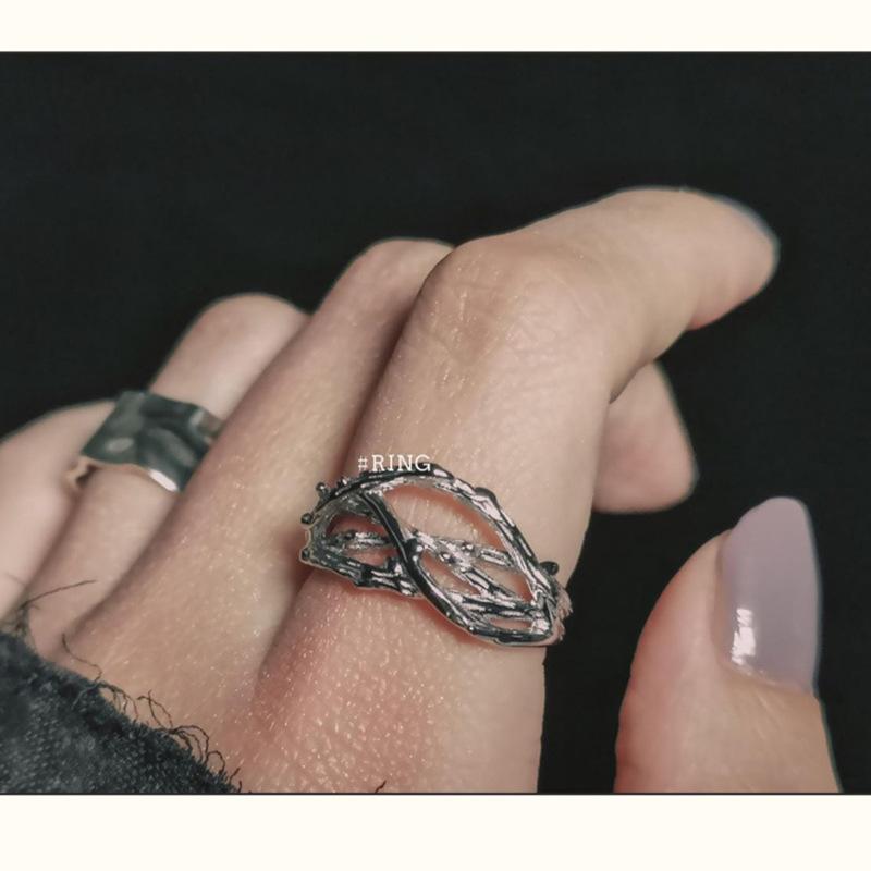 Branch Texture French Opening Personality Irregular Index Finger Ring Niche Design Cold Wind Ring Female