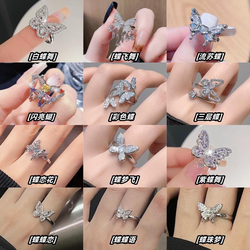 Full Diamond Zircon Butterfly Series Open Ring Light Luxury High Sense Niche Design Fashion Ring