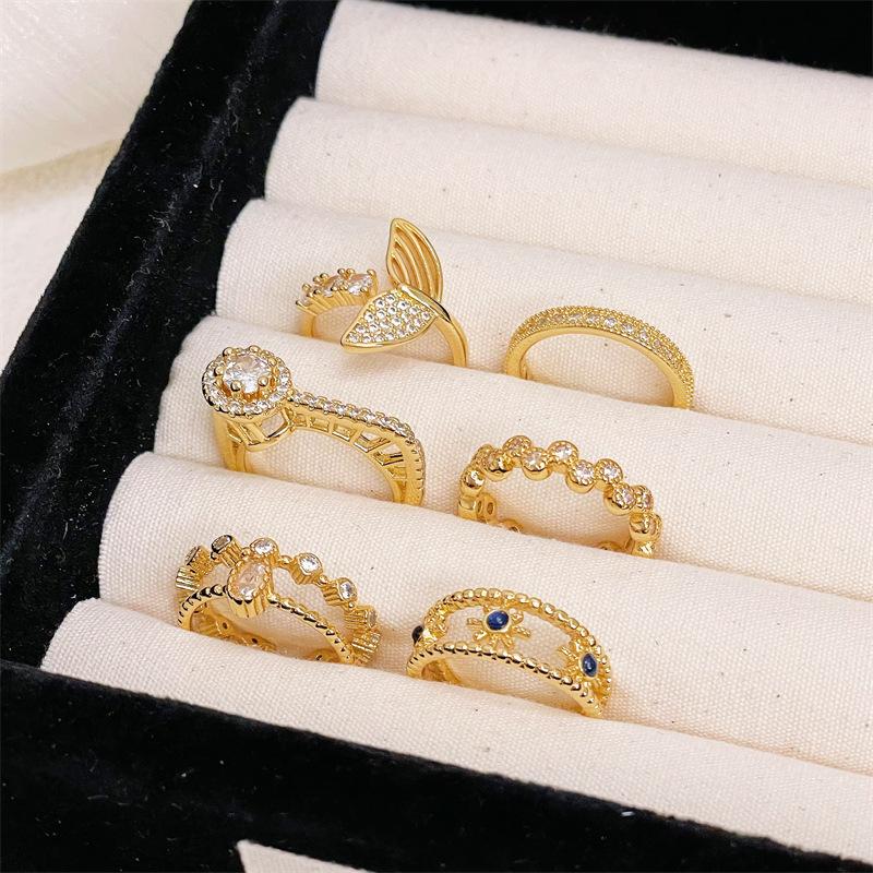 Niche Design Micro-Inlaid Zircon Medium Antique Gold Open Ring French Retro Fishtail Index Finger Ring Light Luxury Ring