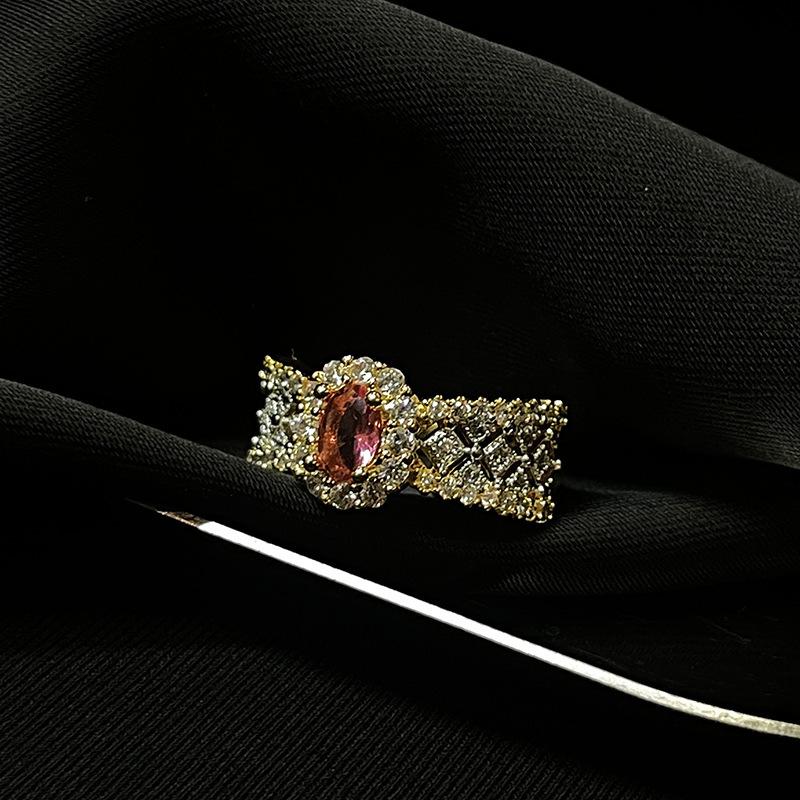Italian Antique Retro Fashion Open Ring Hollow Micro-Inlaid Zircon Double-Layer Color Separation Light Luxury Ring