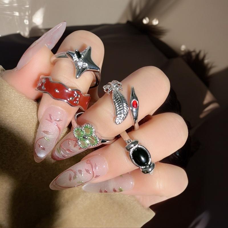 Niche Design Four-Leaf Clover Open Ring, Women'S High Sense Of Retro Temperament Dripping Oil, National Tide Personality Ring
