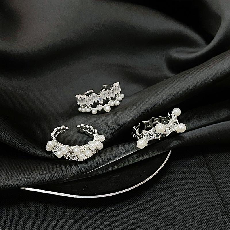 Sky Mirror Light Luxury High-End Zircon Niche Design Fashion Open Ring Pearl Stacked Ring Woman