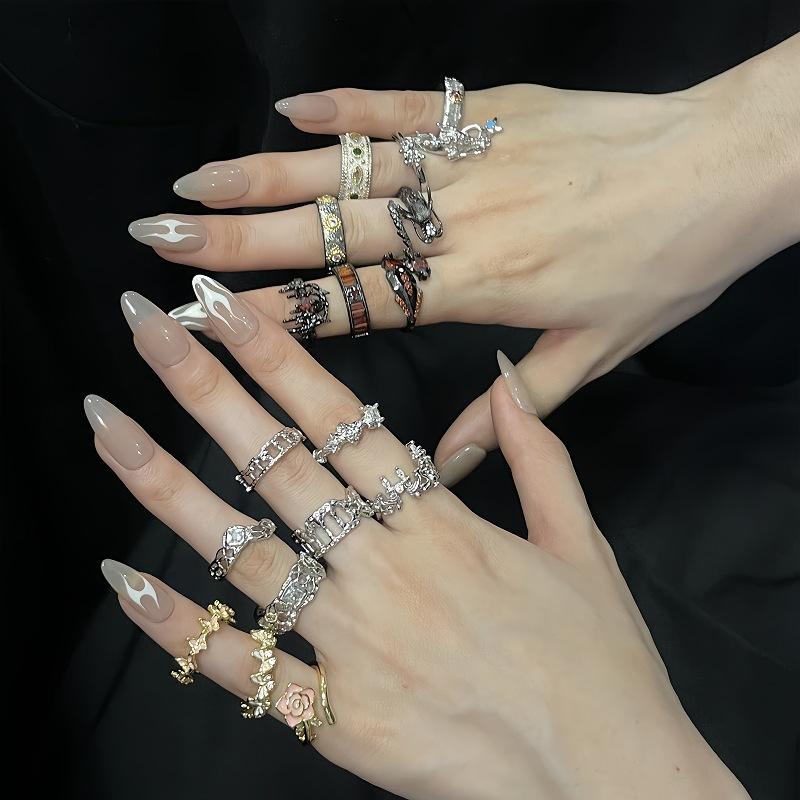 Caibao Medieval Ring Women'S Niche High-End Light Luxury Retro Open Ring Set Jewelry
