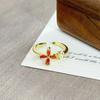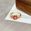 Medieval Vintage Orange Red Zircon Inlaid Simple Open Ring Female Retro Flower Temperament Niche Index Finger Ring