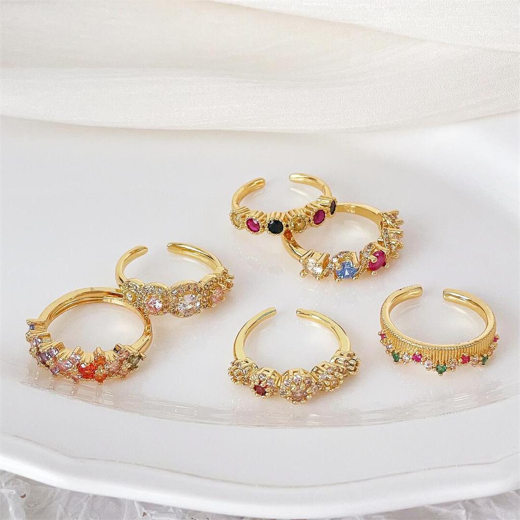 Retro Gold Colorful Sparkling Diamonds Niche Design Open Ring Court Style Exquisite Elegance Light Luxury High-End Ring