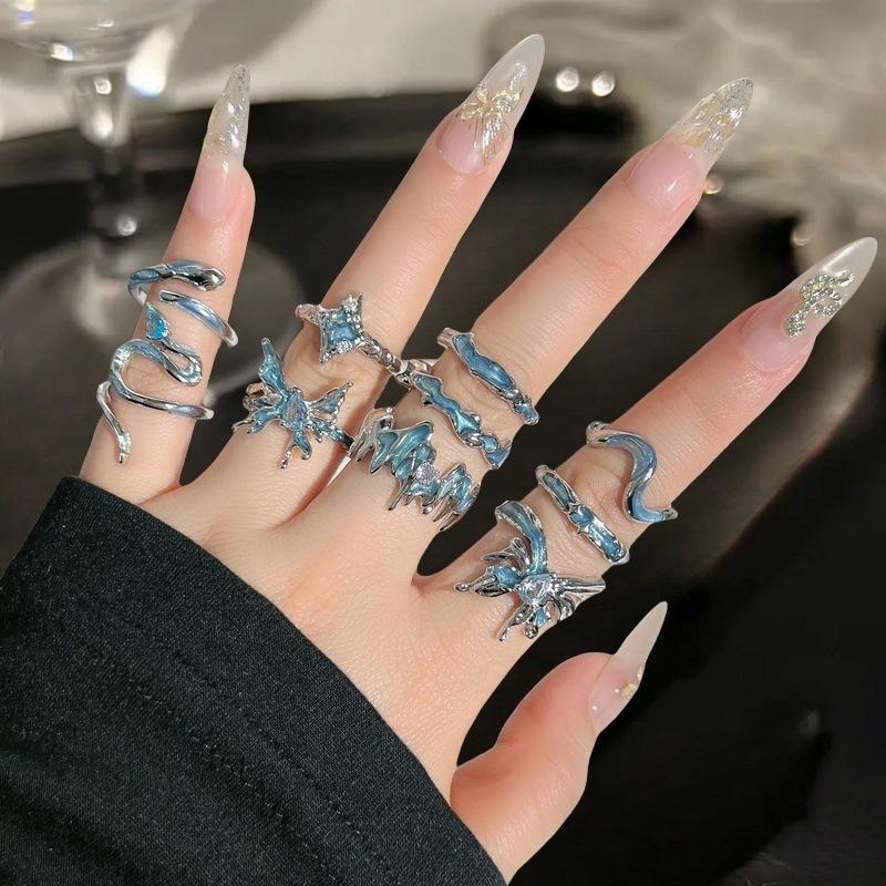 Blue Oil Drop Butterfly Open Ring Irregular Fold Light Luxury High Sense Niche Personality Ring