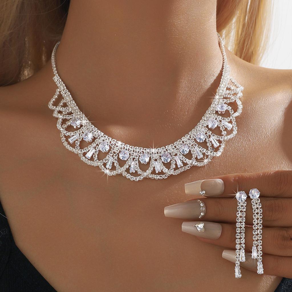 Full Diamond Rhinestone Necklace Earrings Delicate Clavicle Chain Earrings Two-Piece Set