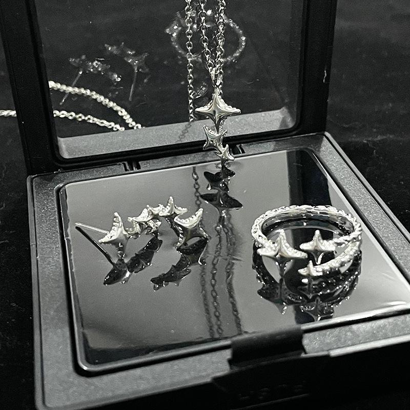 Star Plain Circle Open Ring Cold Wind Star Necklace High-End Stud Earrings Niche Design Set Female Tide