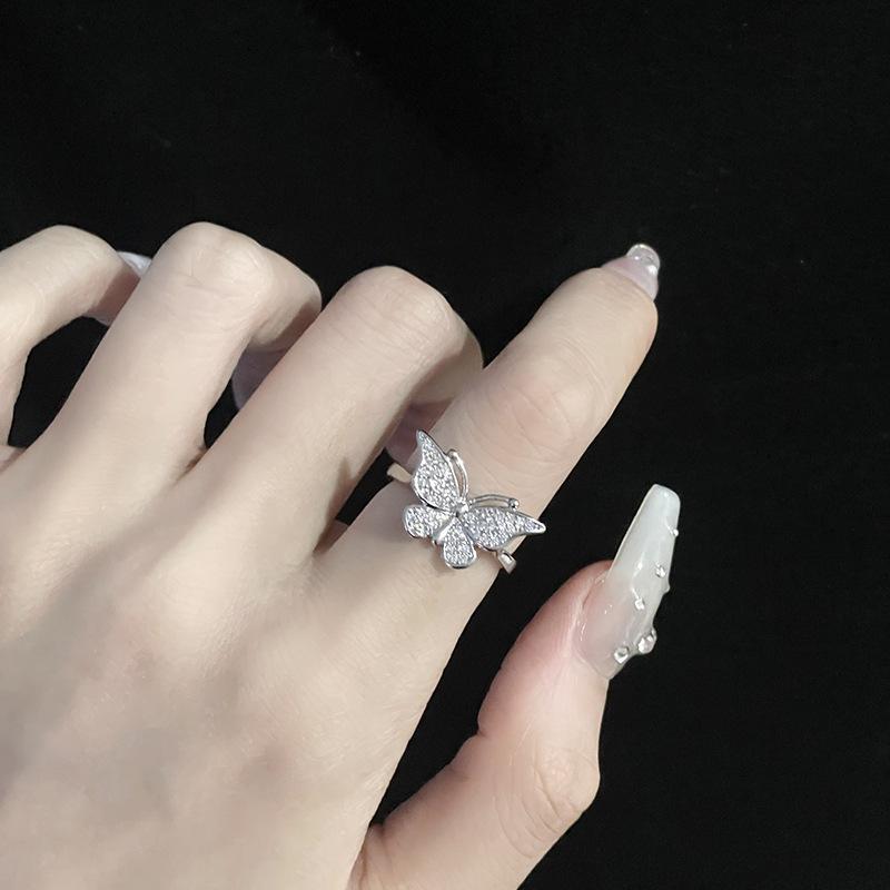 Butterfly Opening Ring Female Niche Design Advanced Cold Wind Full Diamond Zircon Personality Sweet Cool Wind Index Finger Ring