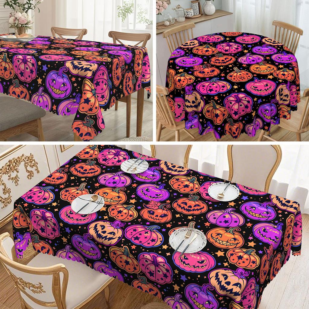 1 Piece, Halloween Pumpkin Pattern Tablecloth Purple, Orange And Black, Suitable For Round And Long Table Tables