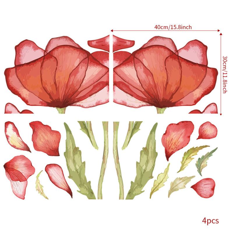 4sheets/set Wall Stickers Of Removable Poppy Watercolor Inkjet For Bedroom Living Room Decoration