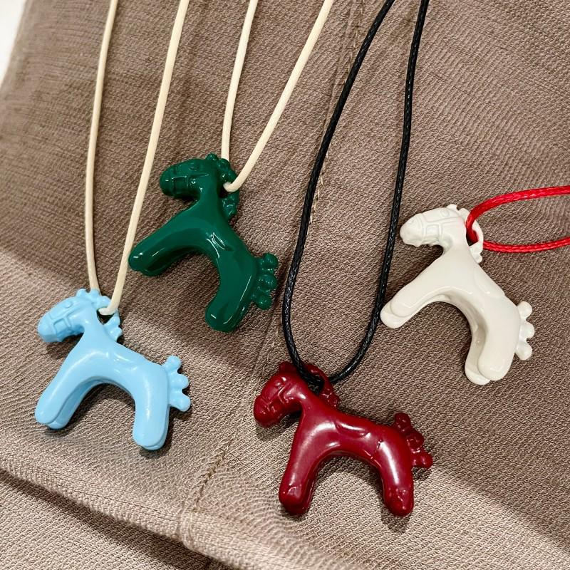 Colorful Cloisonné Drip Glaze Pony Pendant Choker Necklace - Childlike Sweater Chain for Women