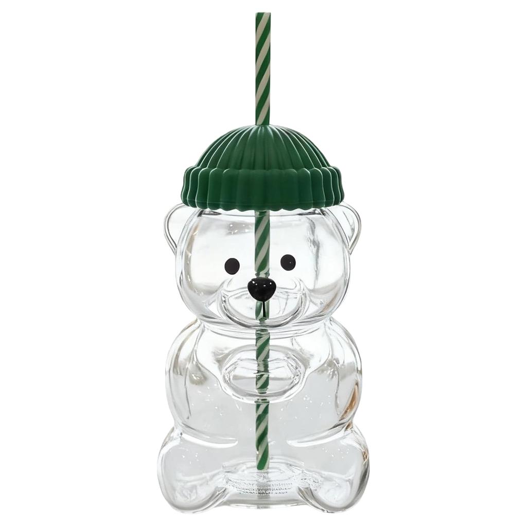 Bear Straw Cup Christmas Bear Coffee Cup Cute Bear Glass Cup Holiday Glass Cup Birthday Christmas Gifts for Women Kids Friends