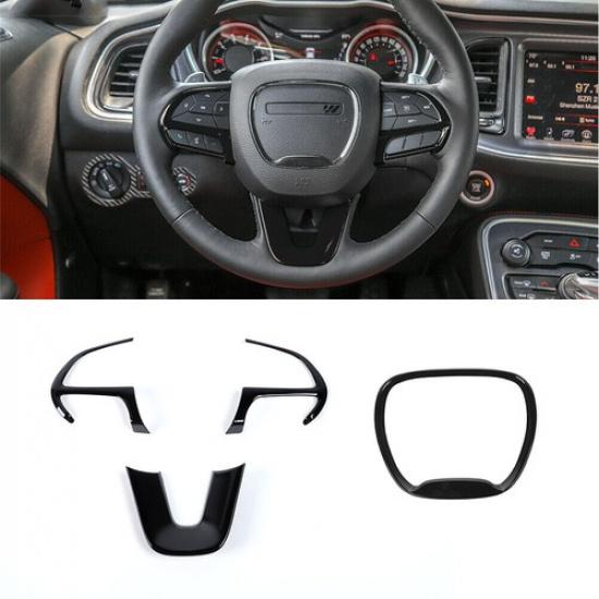 4pcs Black Steering Wheel Cover Trim Bezels For Dodge Charger Challenger 2015+
