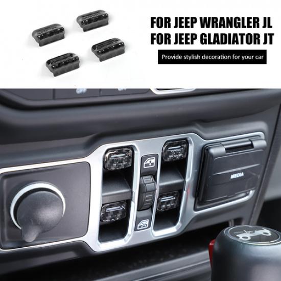4x Carbon Fiber Window Lift Switch Button Cover Trim for Jeep Wrangler JL JT 18+