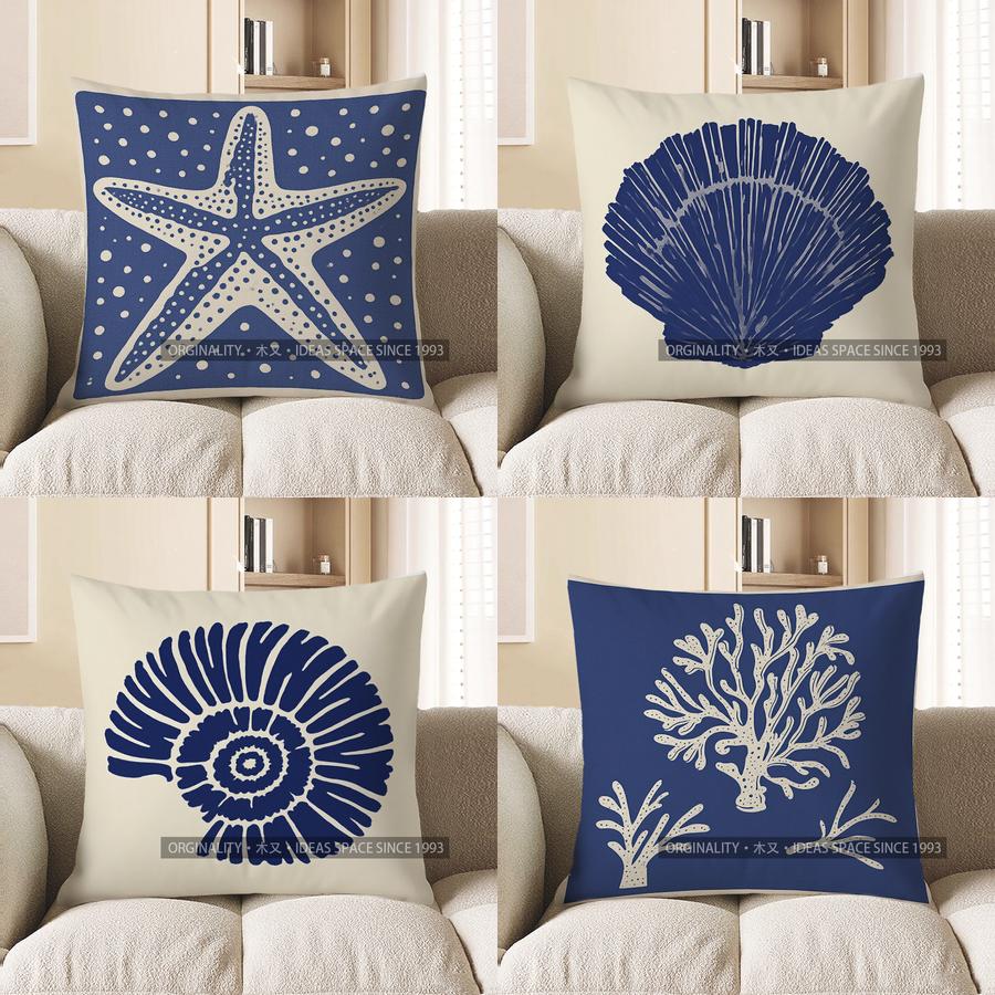 Home Decor Blue Starfish With Dots Throw Pillow Cover Pattern Cushion Cover Suitable For Sofa Bedroom Car Pillow Cover