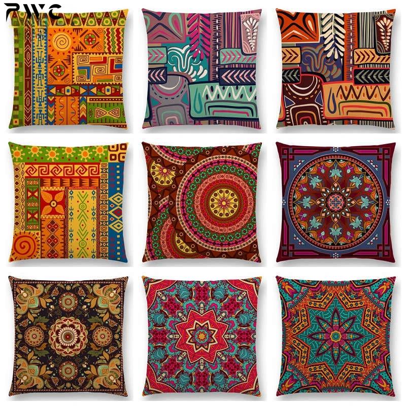 Hot Sale Bestselling African Animal Symbol Block Bohemian Geometric Floral Design Paisley Carnival Mandela Sofa Cushion 45*45cm