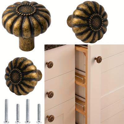 4pcs Zinc Alloy Drawer Pulls,antique Brass Cabinet Knobs, 1.22*1.18 Inches,vintage Drawer Pulls,cabinet Hardware with Mounting Screws