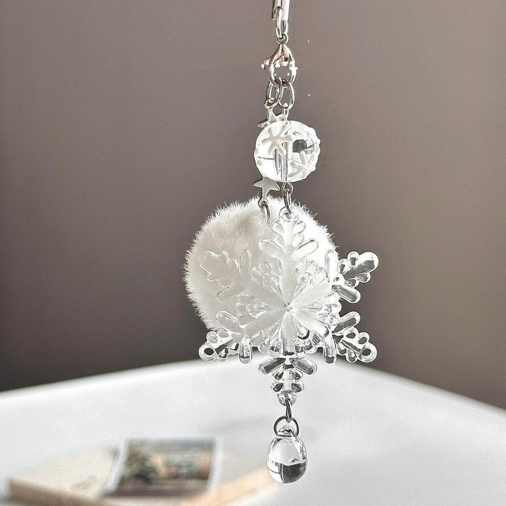 Snowflake Phone Charm Winter White Fur Ball Glass Clear Star Bead Cellphone Strap Keychain Wallet Camera Schoolbag Decor Jewelry
