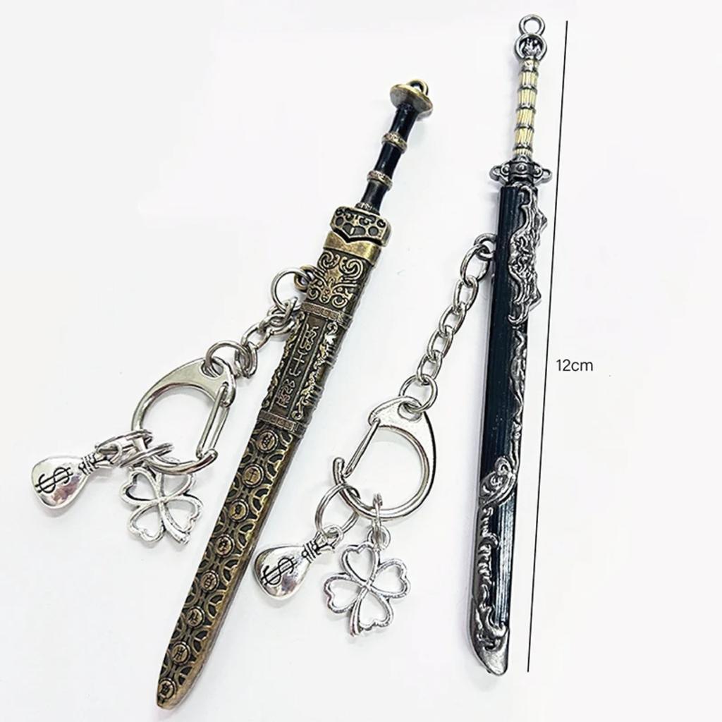 1pc Mini Sword Shape Pendant Keychain Weapon Model With Sheath Toy Knife Metal Anime Key Ring Ornament Purse Charm Accessories