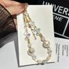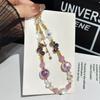 For Light Luxury Crystal Mobile Phone Chain Beaded Short Wrist Chain Fashion Butterfly Pendant Gold Leaf Hand-Made Lanyard