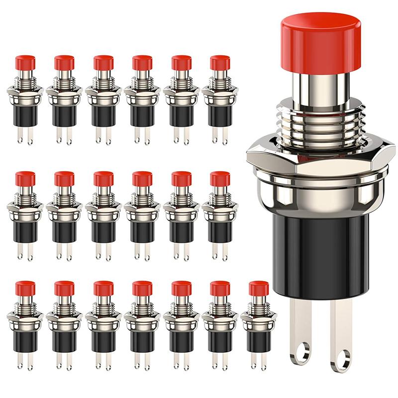 20Pcs Momentary Push Button Switch, 1A 250VAC SPST Mini Pushbutton Switches Normally Open(NO) Black & Red Cap