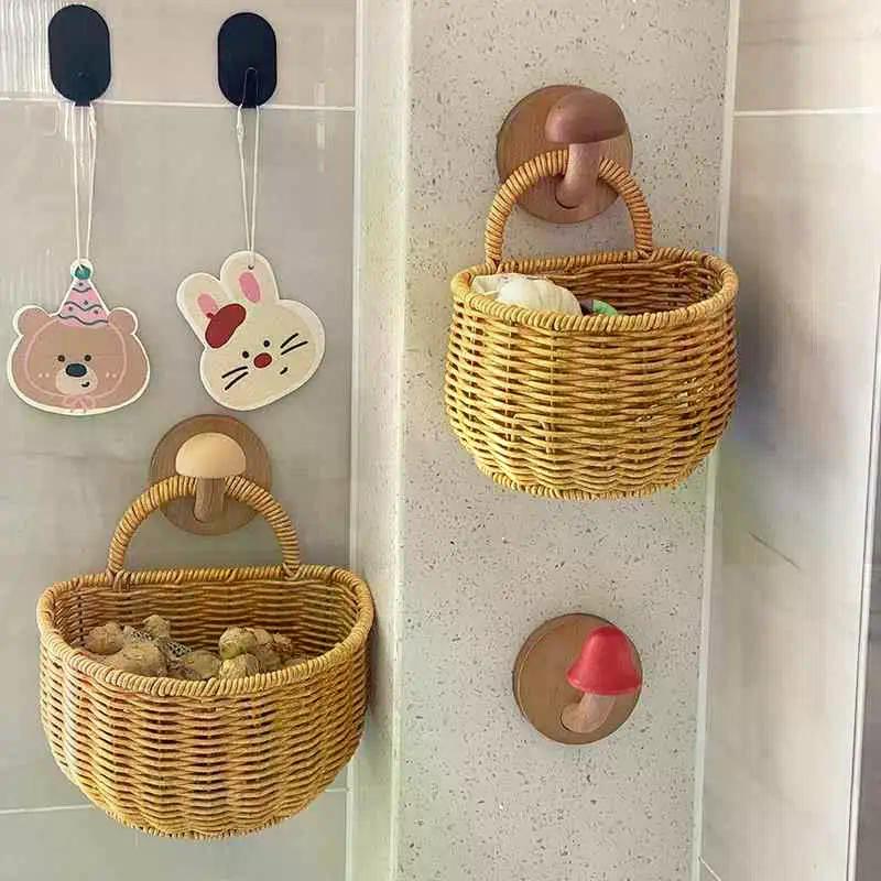 Kitchen Storage Basket With Handle Cute Wall Hanging Woven Basket Kawaii Hanging Storage Basket Kitchen Sundries Organizer