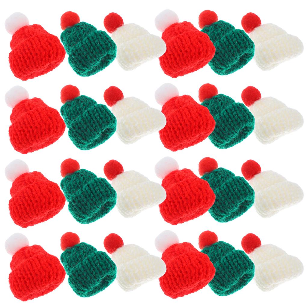 24Pcs Christmas Mini Knitted Hats Adorable Handcrafted Miniature Caps for DIY Craft Wine Bottle Decor Tree Ornaments Festive