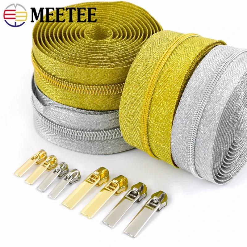 2/3/5M Meetee 3# 5# Gold Sliver Nylon Zipper with Sliders Coil Zips for Handbag Repair Kit Zippers Tape DIY Sewing Accessories