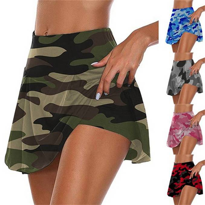 Women's Fashion Camouflage Print Sports Skirt Running Casual Fitness Base Short Skirt Yoga Safety Pants