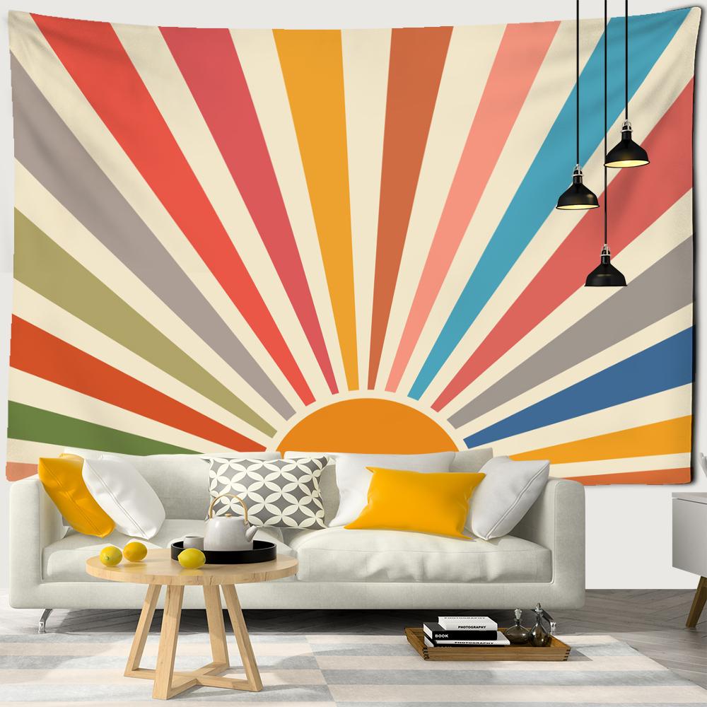 Sunrise Illustration Tapestry Wall Hanging Psychedelic Witchcraft Nature Landscape Aesthetics Room Home Art Decor