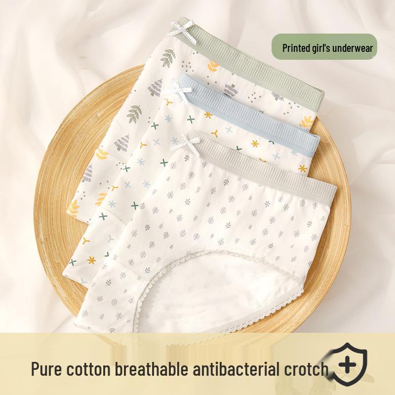 Women's Pastoral-Style Mori Girl Mid-Waist Cotton Lace Print Panties