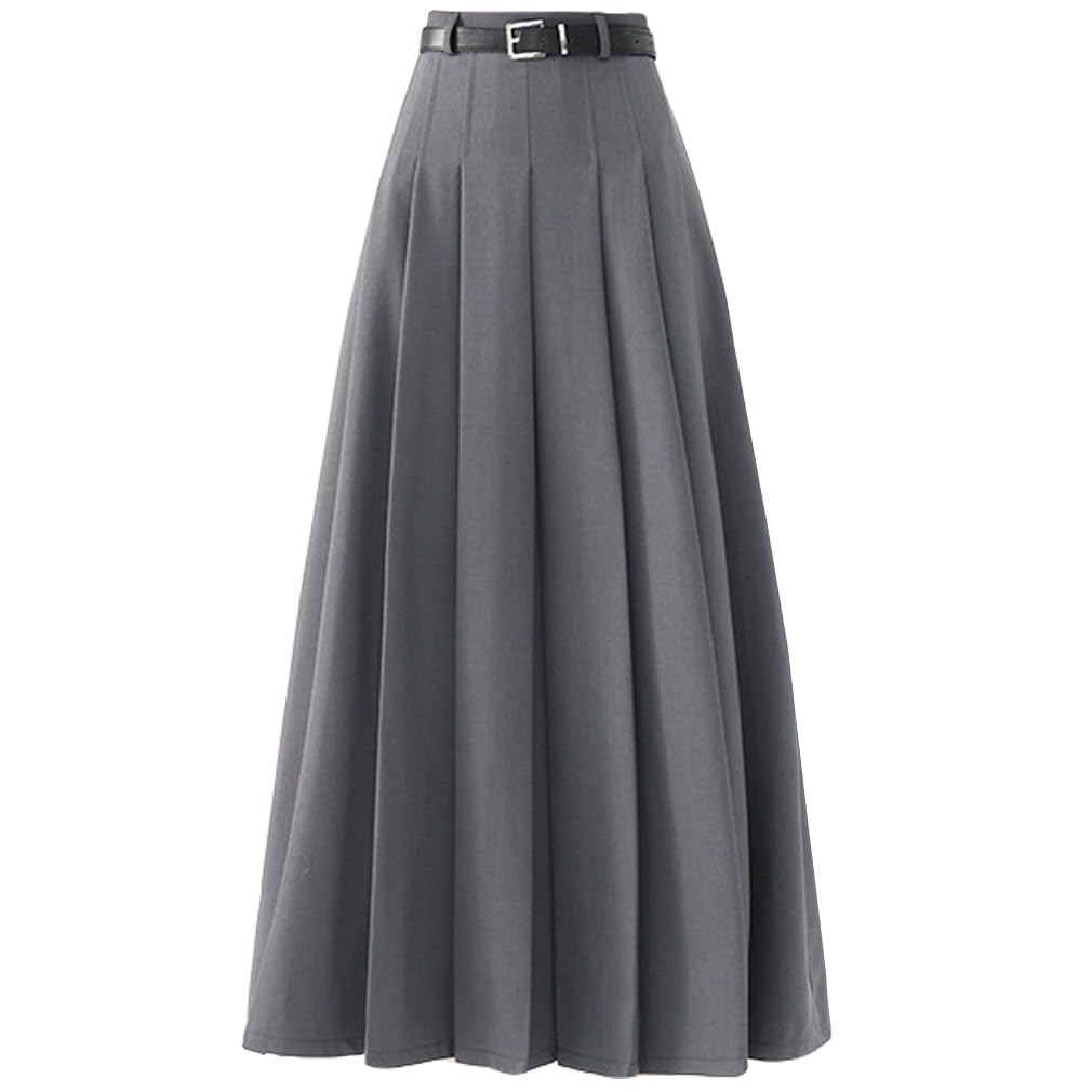 Long Pleated Maxi Back Perfect for Commuting or Everyday Plus Size [saliwind] Women's Skirt, A-Line, Zipper, Cute, Stylish, Wear, (Gray, Small)