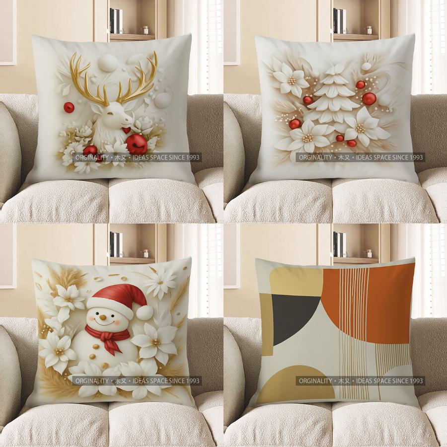 Home Decor Deer with Golden Antlers and Red Balls Pillow Pattern Cushion Cover Suitable for Sofa Bedroom Car Pillow Cover