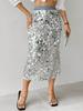 Bestselling Women's Fashion Solid Elegant High Waist Slim Fit Midi Sequin Half-Length Skirt LFY