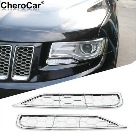 Chrome ABS Headlight Cleaning Trim Cover Decor for Jeep Grand Cherokee 2014-2016