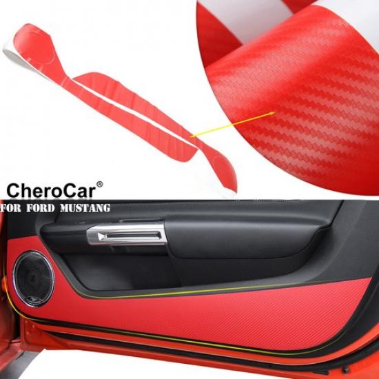 Interior Door Anti Kick Trim Cover Stickers For Ford Mustang 15+Red Carbon Fiber