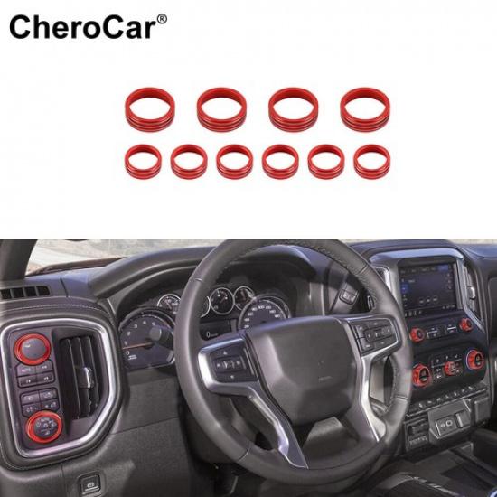 10Pcs Red Light AC Radio Control Switch Knob Cover Kit For Chevy Silverado +