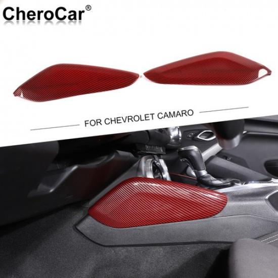 Red Carbon Fiber Gear Shift Side Panel Decor Trim For Chevrolet Camaro 2016-