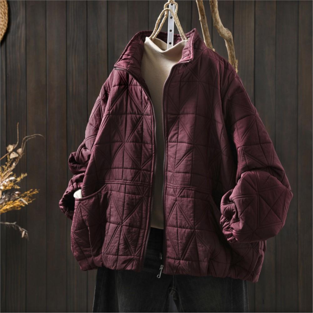 Johnature Women Vintage Winter Zipper Jackets Turtleneck Solid Color Long Sleeve Patchwork Pockets Casual Jackets Coats