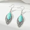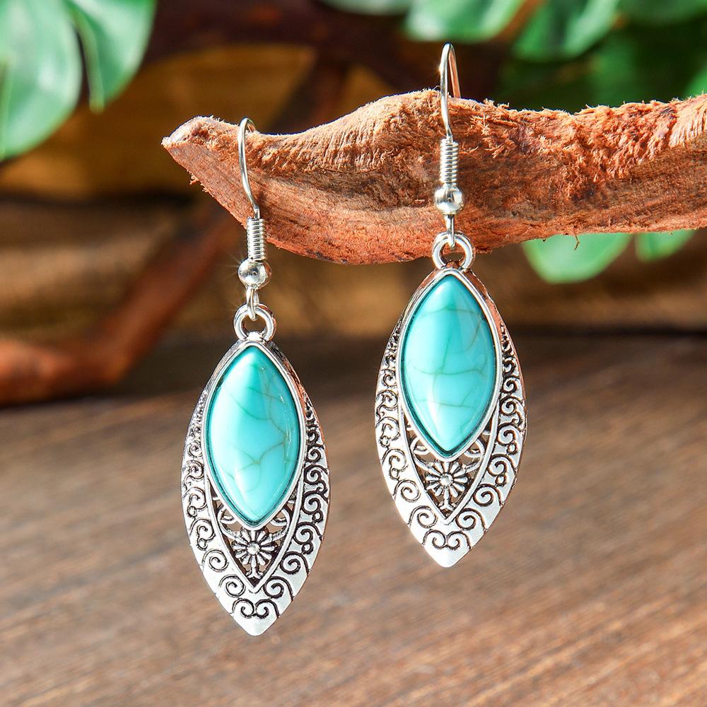 Vintage Pattern Blue Rhinestone Inlaid Turquoise Water Drop Earrings Bohemian Personality Water Drop Earrings