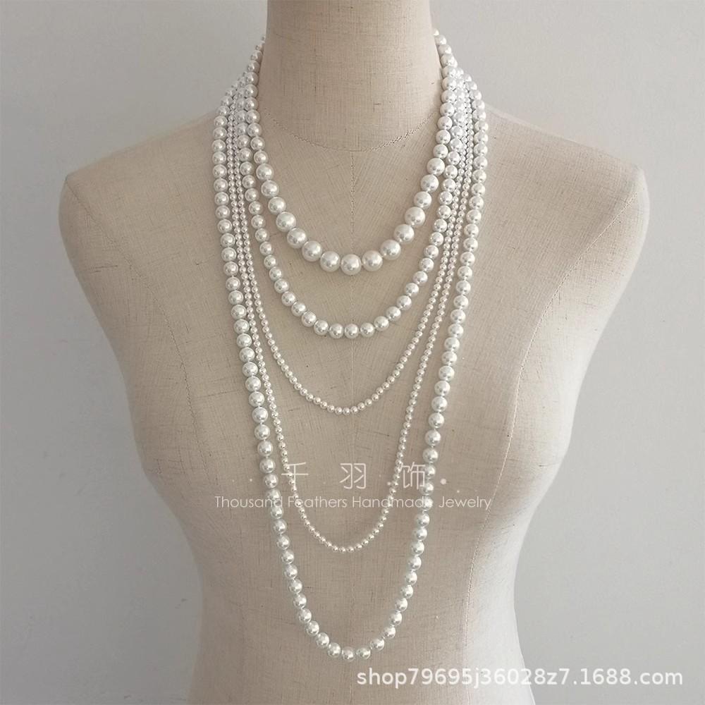 Vintage Hepburn Pearl Necklace Long Multilayer Sweater Chain Bridal Wedding Photography Cheongsam Styling Accessories