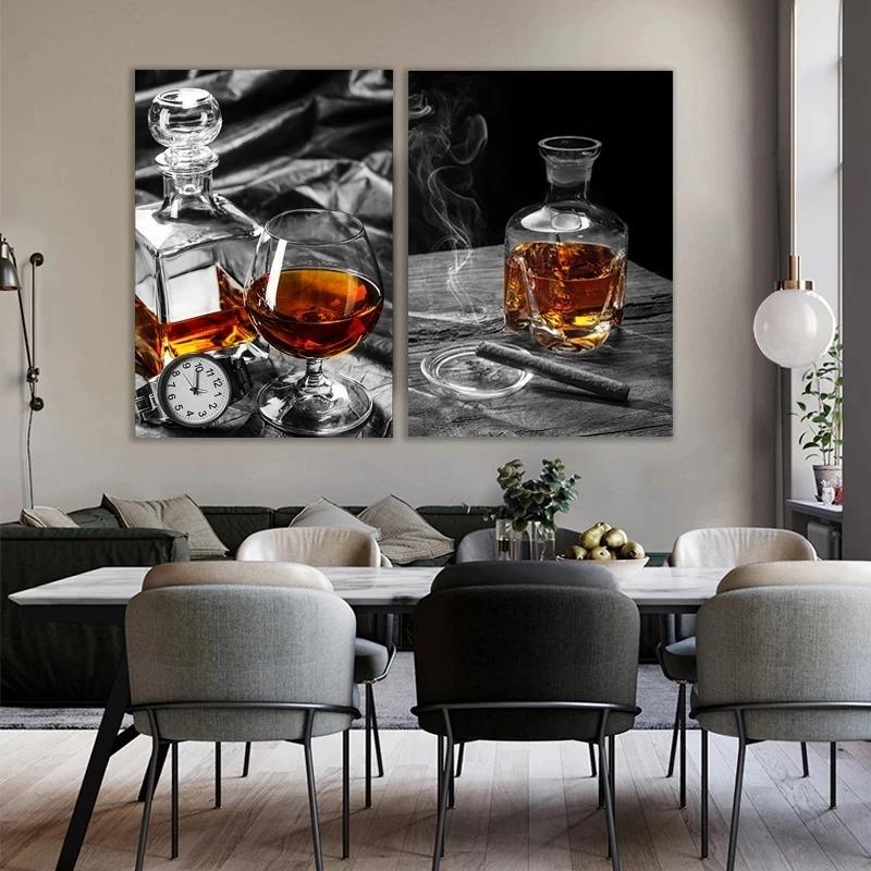 Vintage Wine Bottle and Glass Canvas Painting Posters and Prints Wall Art Picture Living Room Home Office Kitchen Decor Cuadros