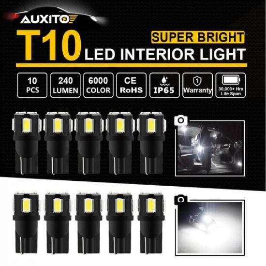 T10 194 10X Bulbs LED W5W Interior Map Light Dome Glove Light Bulb White 6000k