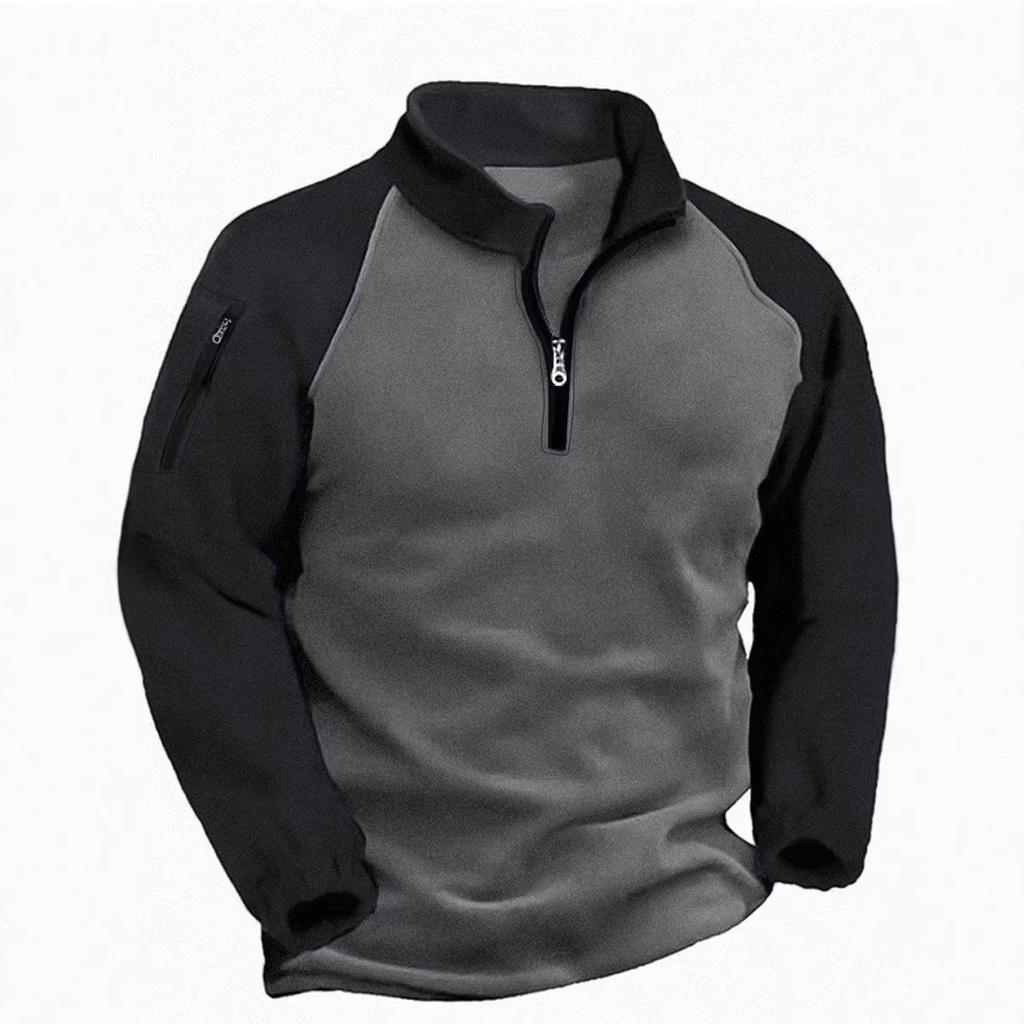 Tactical Fleece Jacket for Men Warm Stand-Up Collar Pullover Two-Tone Zip-Up Sweatshirt Outerwear