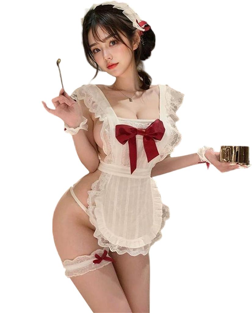 This 5-piece set includes a maid costume, cosplay dress, sexy apron, cute sheer suspender skirt, and a headband. It also includes a sailor uniform, leotard, and nurse uniform. This adult costume makes a great gift for crossdressers, photo shoots, parties, Halloween, and Christmas.