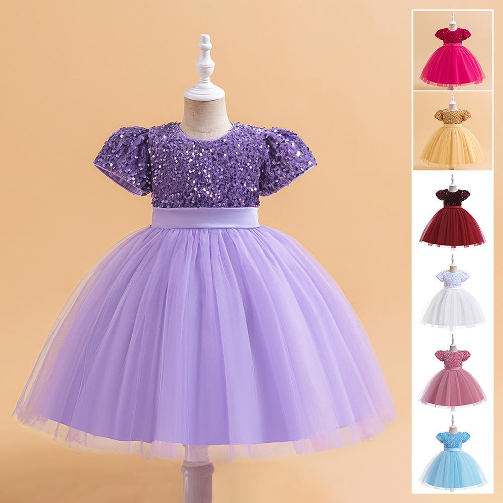 This elegant dress is designed for young fashionistas who love to make a statement at special occasions. Featuring a shimmering sequin overlay, this cotton blend dress combines comfort with style. The puffy design and enchanting bubble sleeves add a touch of fairy-tale charm, making it perfect for catwalk appearances and evening events. The dress’s eye-catching design ensures your little one will shine bright, whether twirling on stage or enjoying a glamorous night out.