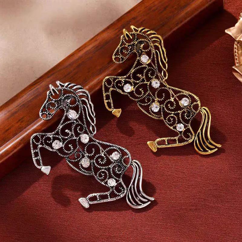 Elegant Zodiac Horse Brooch: High-End Retro Pin for Luxury Fashion Accessories