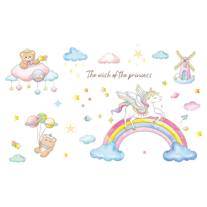 Unicorn Wall Stickers for Girls Room Decor, Rainbow Princess Cartoon Wall Decals, Cute Fantasy Nursery Bedroom Wall Art for Kids Room Decorations